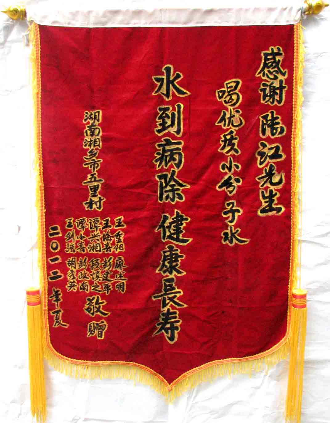 2015年潘志山主動(dòng)寫一篇感想《我以親身實(shí)踐打破了冠心病、高血壓、糖尿病需終生服藥的神話》說(shuō)堅(jiān)持按發(fā)明人陸?江先生倡導(dǎo)的用已饑方食的方法合理膳食,我的健康狀況越來(lái)越好:糖尿病造成的視力下降有了明顯的恢復(fù),末梢神經(jīng)炎導(dǎo)致的指端潰爛現(xiàn)在完全痊愈,痔瘡自從飲用微小分子團(tuán)水半年后就再也沒(méi)有復(fù)發(fā)過(guò),氣滯血瘀造成的嘴唇暗紫也漸漸變得紅潤(rùn),舌下靜脈黑紫消失,足背的動(dòng)脈由以前的隱約感到跳動(dòng)現(xiàn)在變得清晰有力。[13]潘先生披露的訣竅,一是飲用微小分子團(tuán)水給脫水細(xì)胞補(bǔ)水,二是已饑方食”養(yǎng)生智慧,患者都能做到。